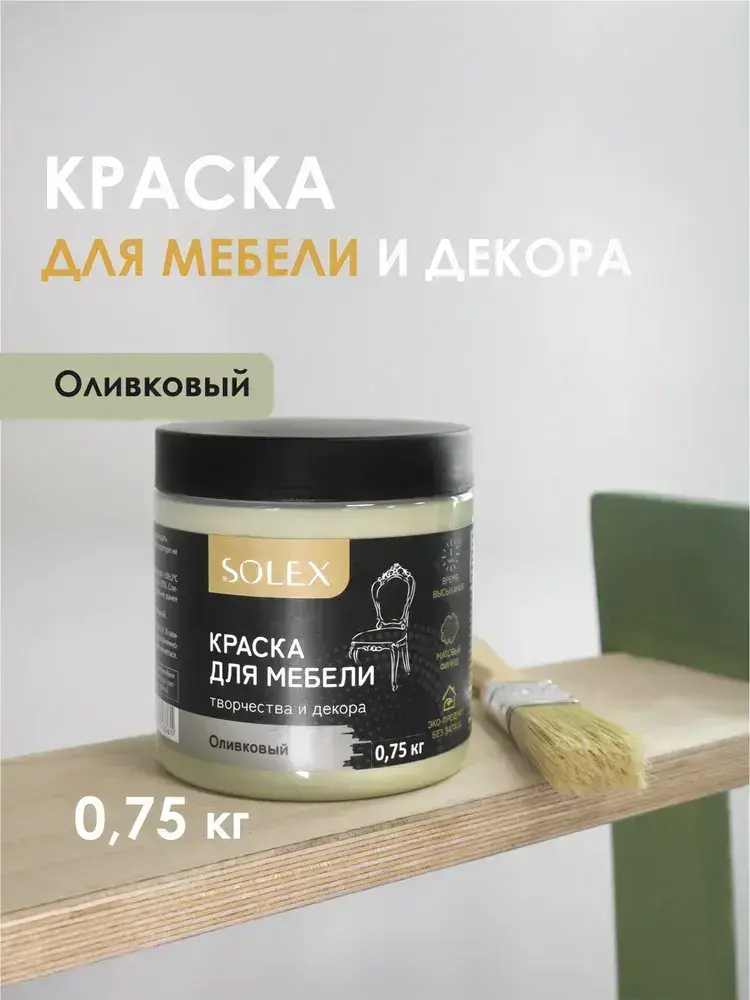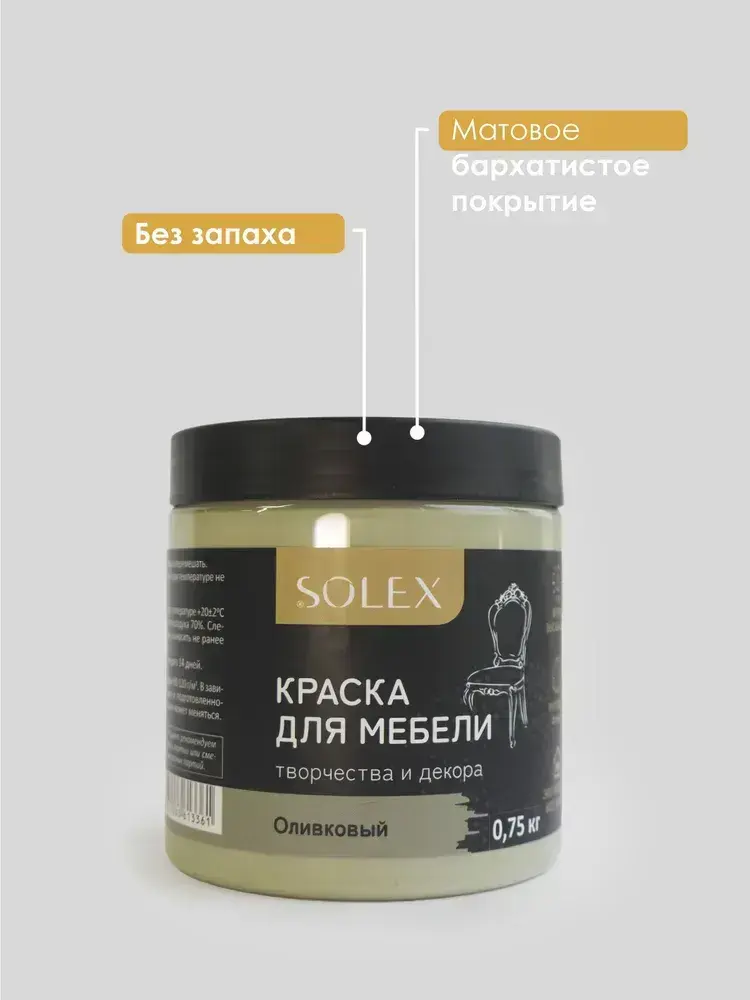 Краска для мебели без запаха цвет Оливковый SOLEX 0,75кг