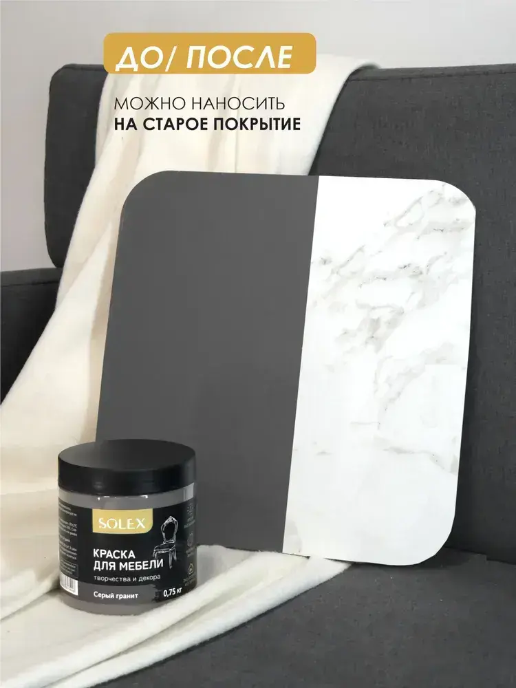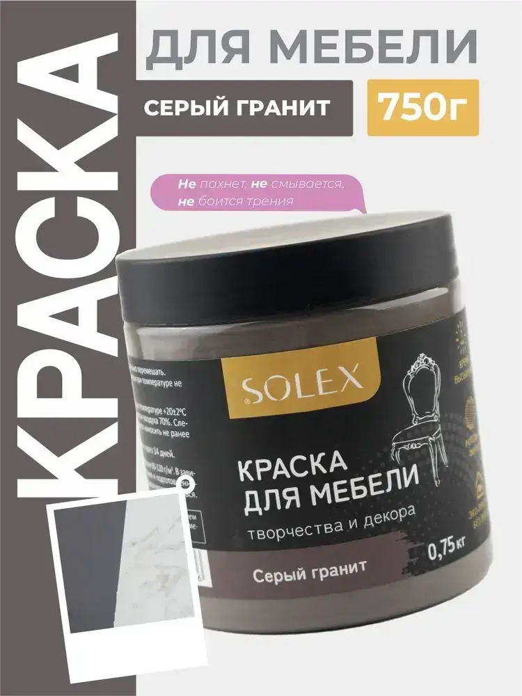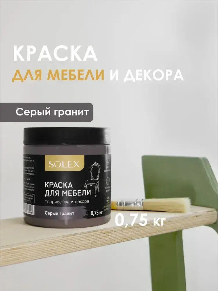 Краска для мебели без запаха цвет Серый Гранит SOLEX 0,75кг