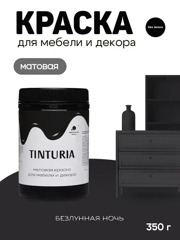 Краска для мебели и декора меловая TINTURIA матовая без запаха безлунная ночь 0,35 кг