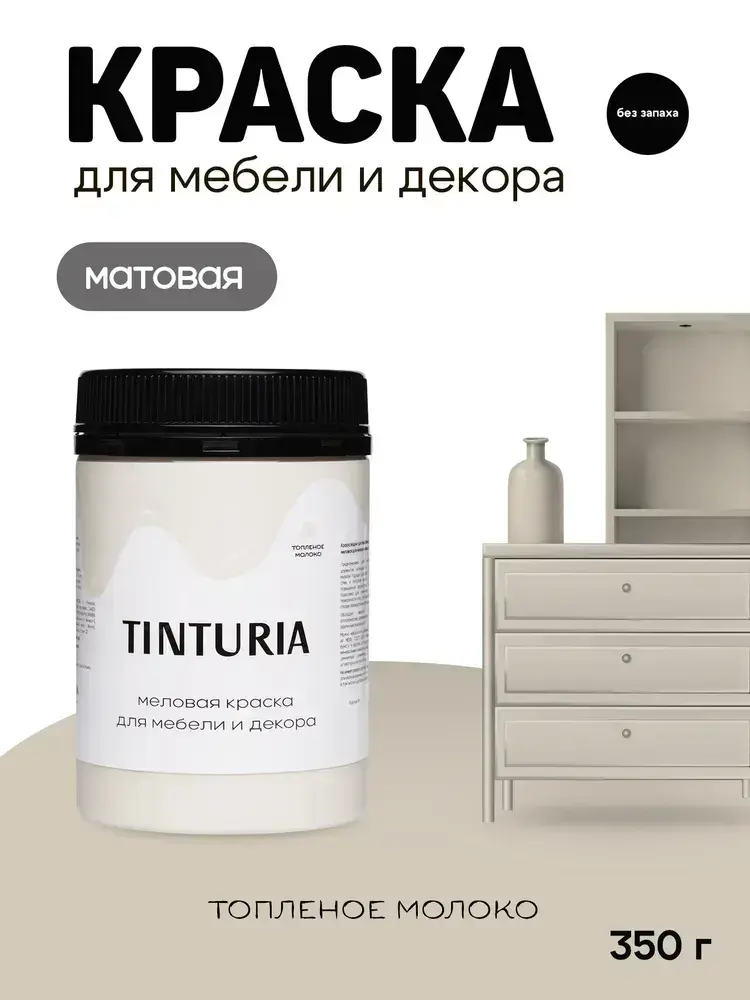 Краска для мебели и декора меловая TINTURIA матовая без запаха топленое молоко 0,35 кг