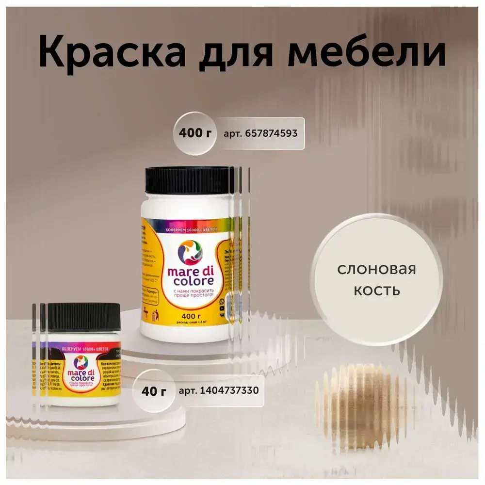Краска для мебели по дереву без запаха быстросохнущая матовая водная Слоновая кость 40 г