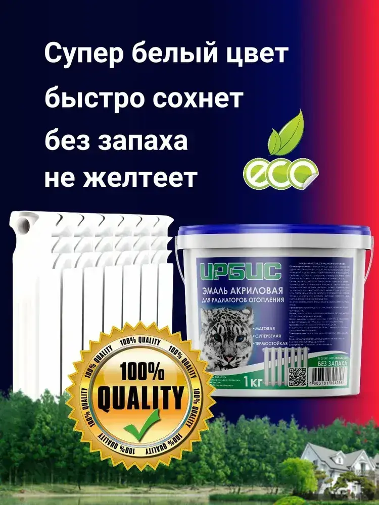Краска для радиаторов отопления, батарей и труб, без запаха, белая, 1 кг АКРИЛОВАЯ, супербелая, матовая