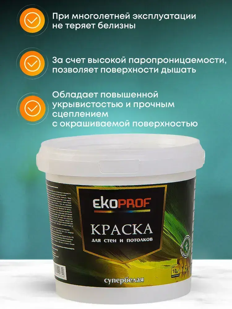 Краска для стен и потолков 1,5 кг супербелая AKRIMAX акриловая, быстросохнущая, для внутренних работ, матовое покрытие, белый
