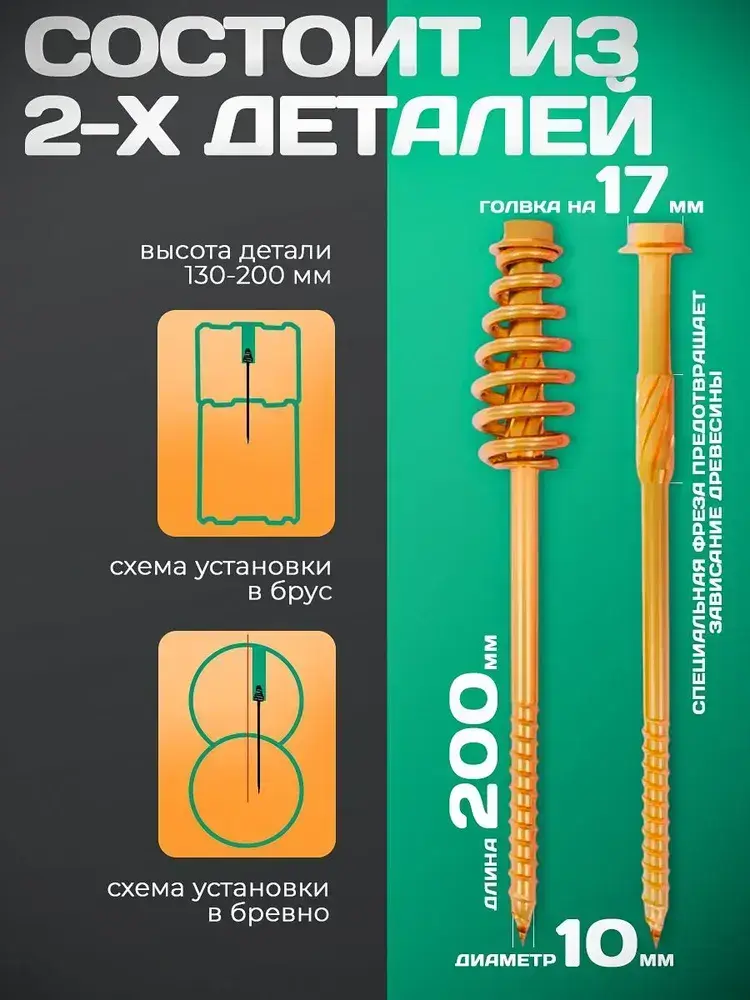 Крепежный пружинный узел для деревянного домостроения, длина 200мм 50 штук, DBD