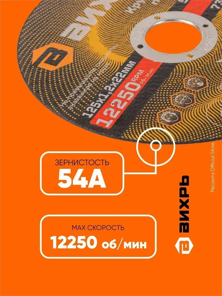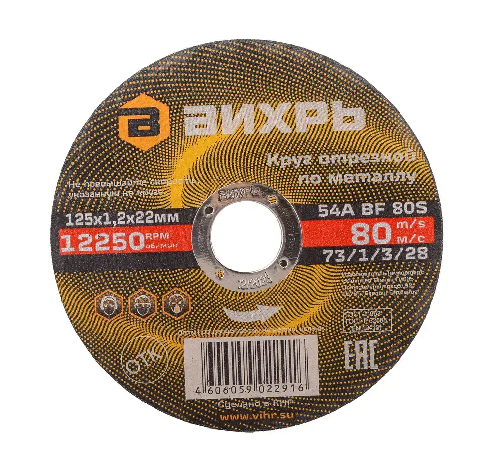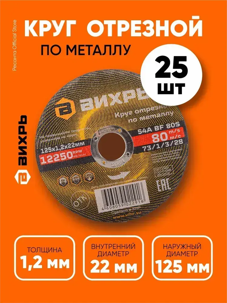 Круг отрезной по металлу 125х1,2х22,2 КОМПЛЕКТ 25 шт. ВИХРЬ