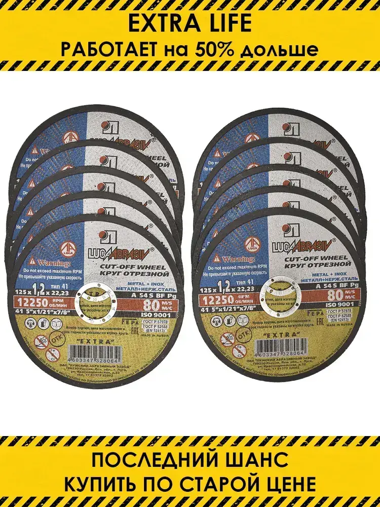 Круг отрезной по металлу. Луга Абразив 125 x 1,2 x 22, 10 шт.