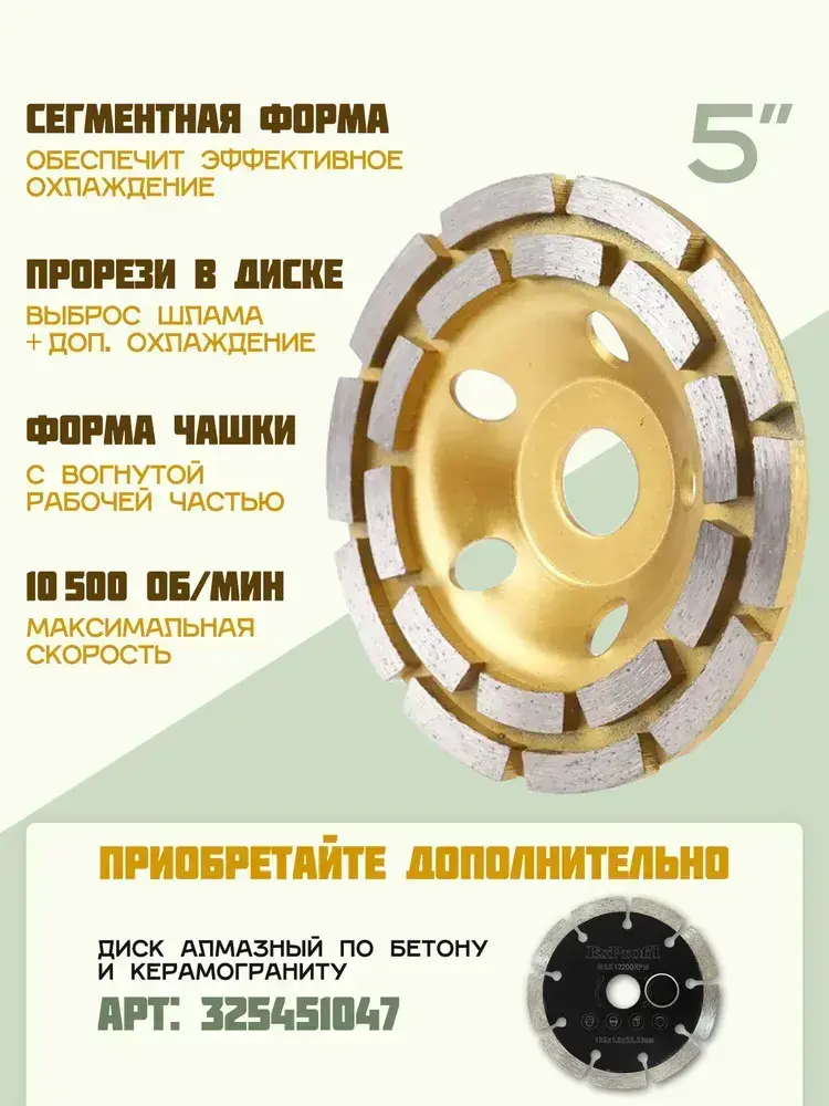 Круг шлифовальный 125 / Чашка алмазная по бетону / Диск зачистной для болгарки 22,23 мм