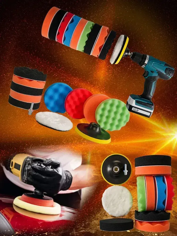 Круги полировальные для авто и фар на липучке 125мм для УШМ и шуруповерта 12 предметов AIDELIFE