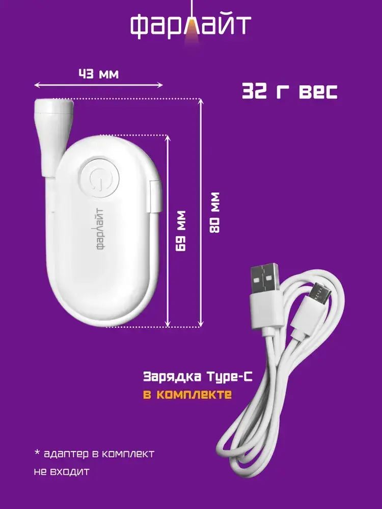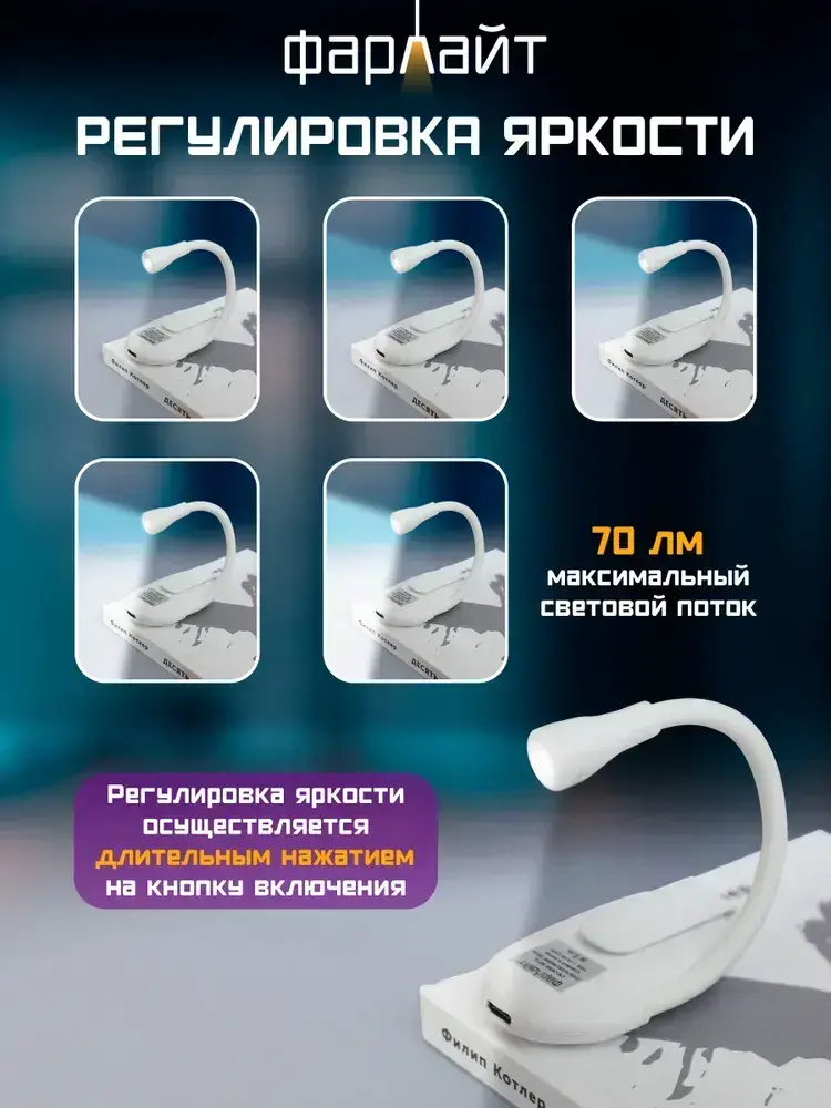 Лампа для чтения Фарлайт на книгу на прищепке, мини лампа, фонарик для чтения книги ручной аккумуляторный карманный с регулировкой яркости, 70 Лм