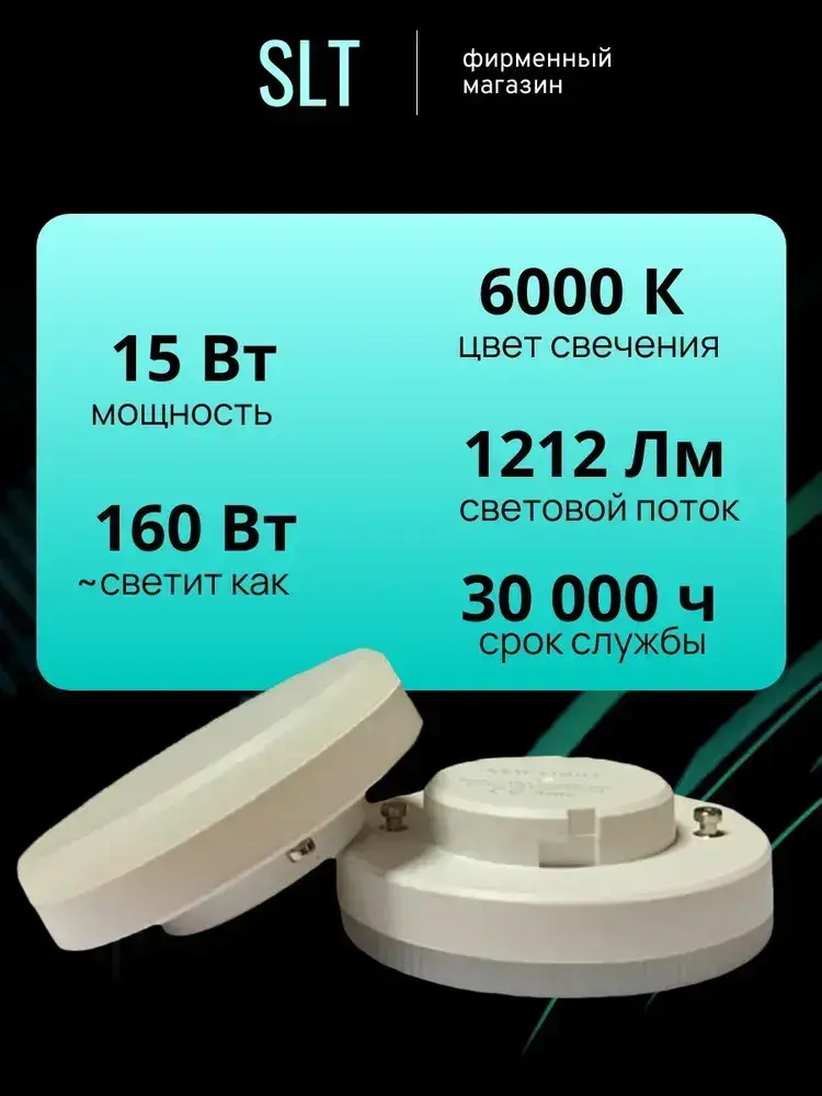 Лампа светодиодная GX53 15Вт фирмы SLT, 6000К белый свет, 1212Лм, упаковка 10шт.