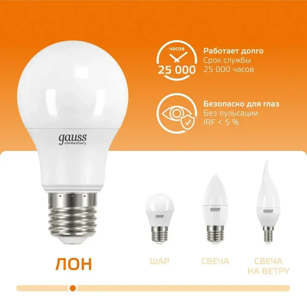 Лампочка светодиодная Е27 Груша 12W 3000K теплый свет УПАКОВКА 10 шт. Gauss Elementary