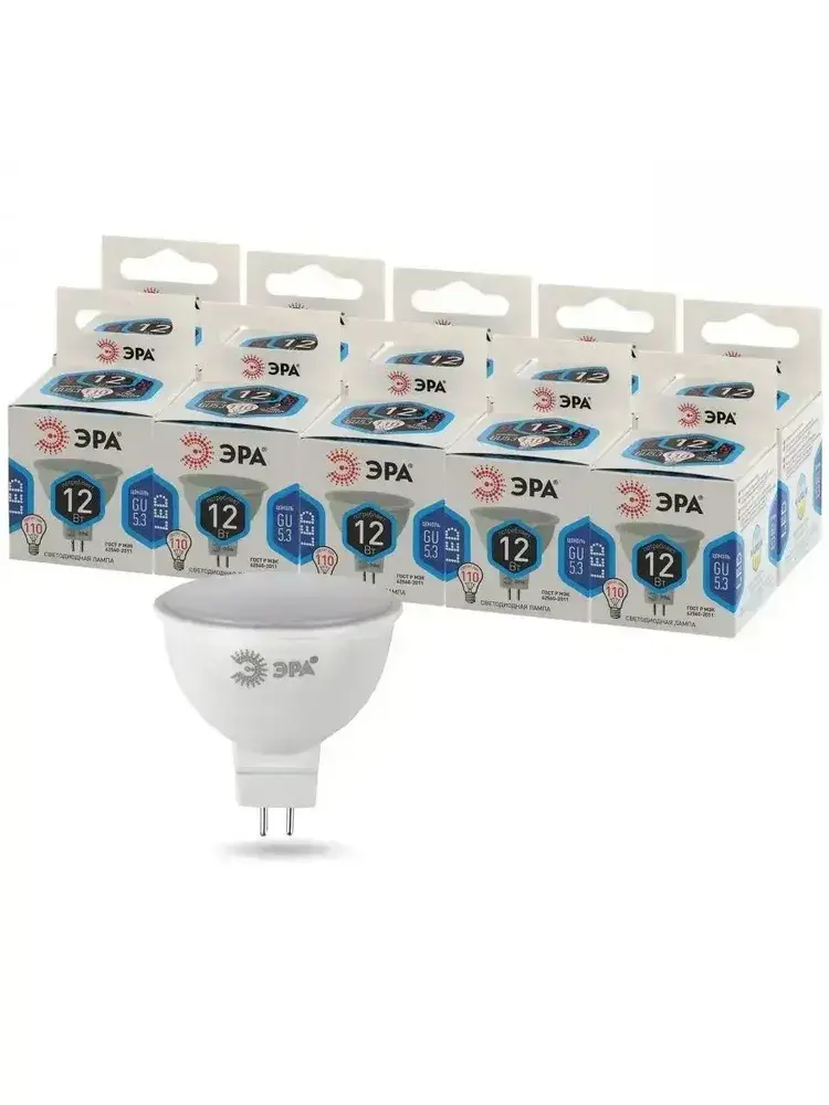 Лампочка светодиодная ЭРА LED MR16 GU5.3 12 Вт софит 4000К нейтральный белый свет набор 10 штук