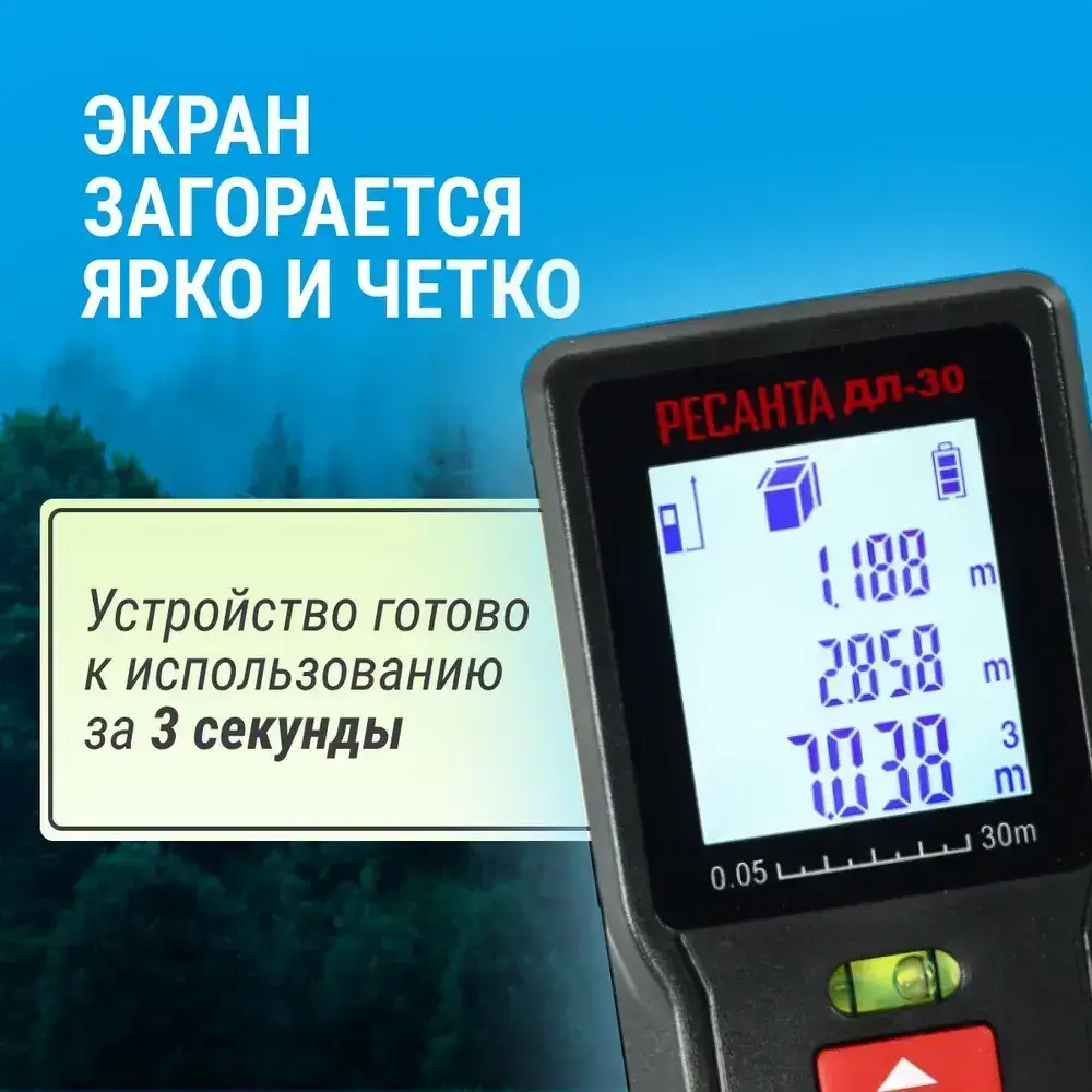 Лазерная рулетка 30м Ресанта , дальномер, батарейки в комплекте, 30МП