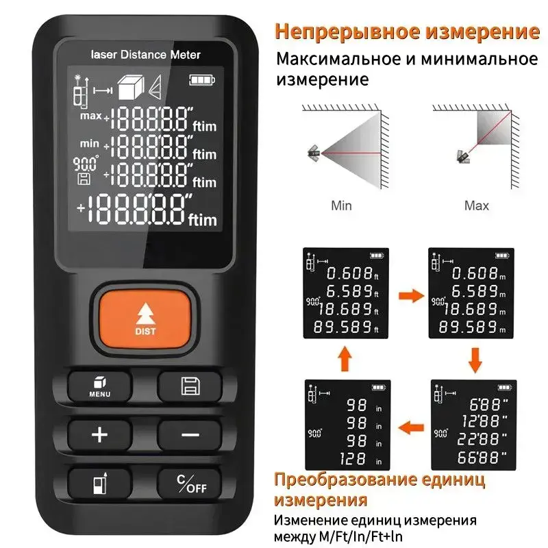 Лазерная рулетка строительная,Дальномер лазерный,50M