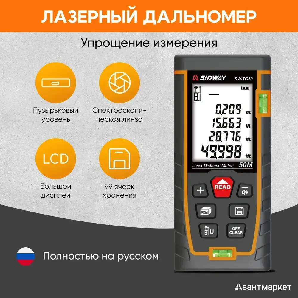 Лазерный дальномер SNDWAY SW-TG50 50м