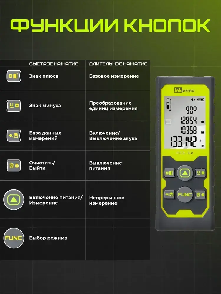 Лазерный дальномер строительный Inkerma ACE-60 лазерная рулетка электронная для ремонта и строительства 60м