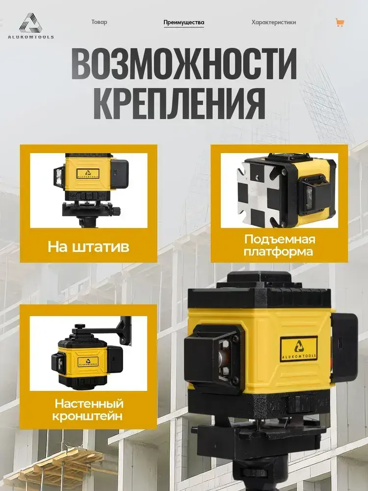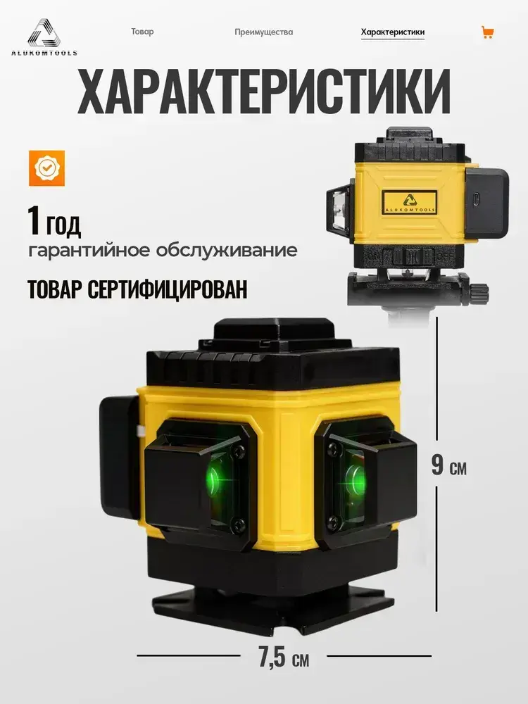 Лазерный уровень нивелир ALUKOMTOOLS 3D 12 линий 360 градусов, откалиброван, с гарантией