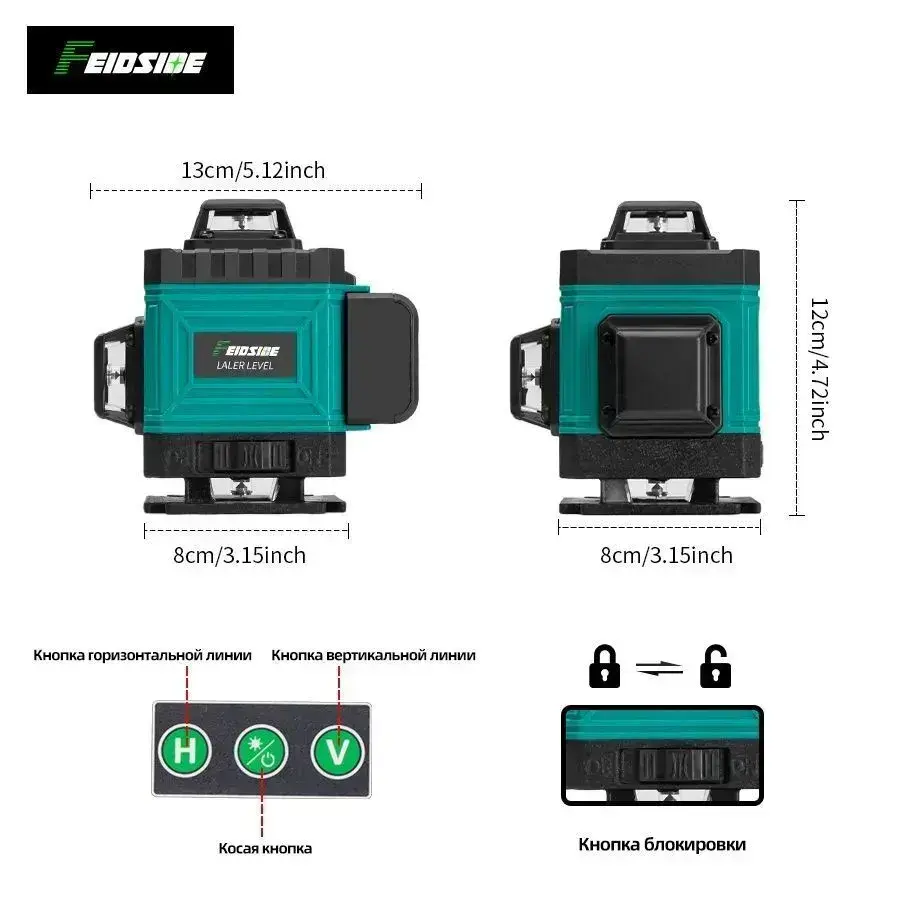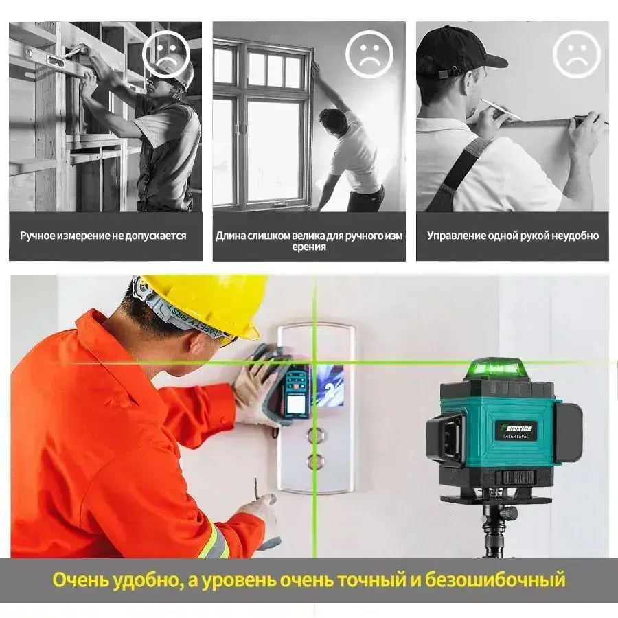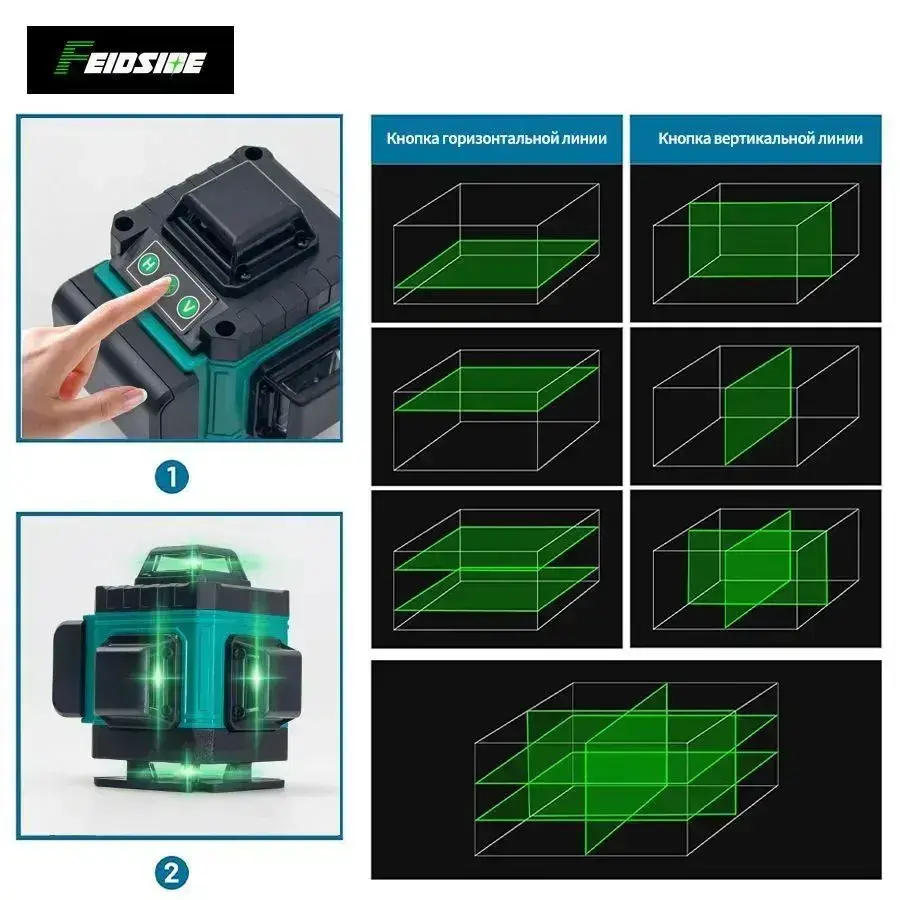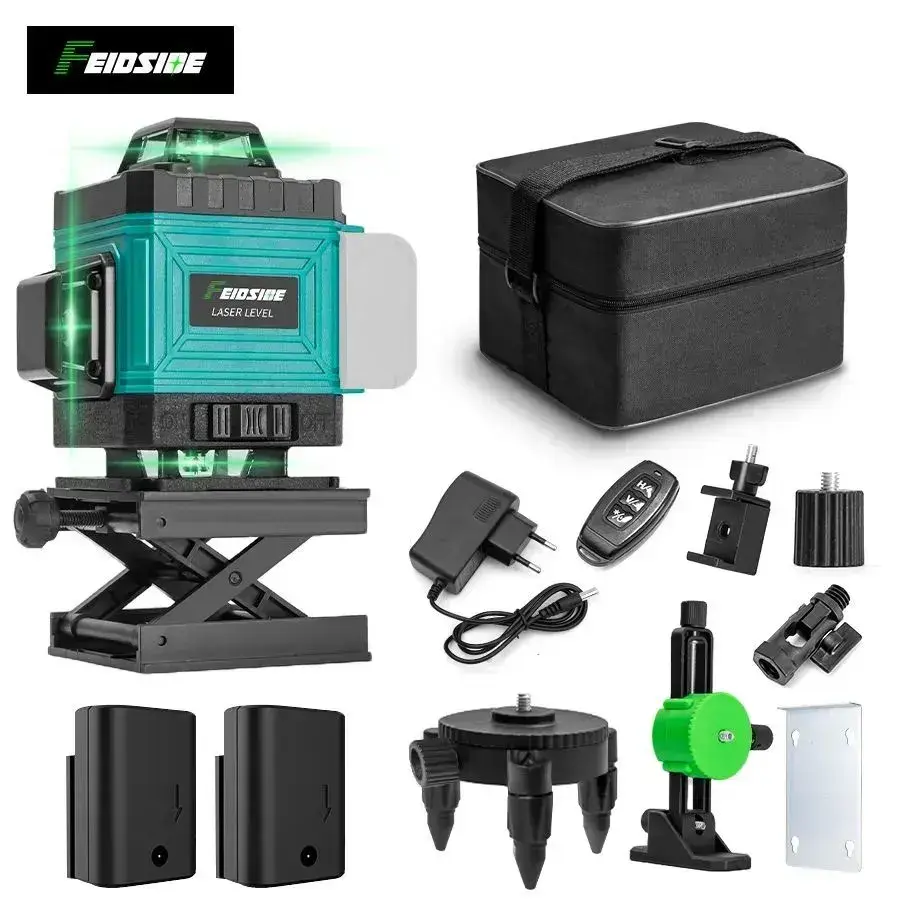 лазерный уровень,Зеленый луч,4D 16 Линий,2 Батарейки Комплект,подарок