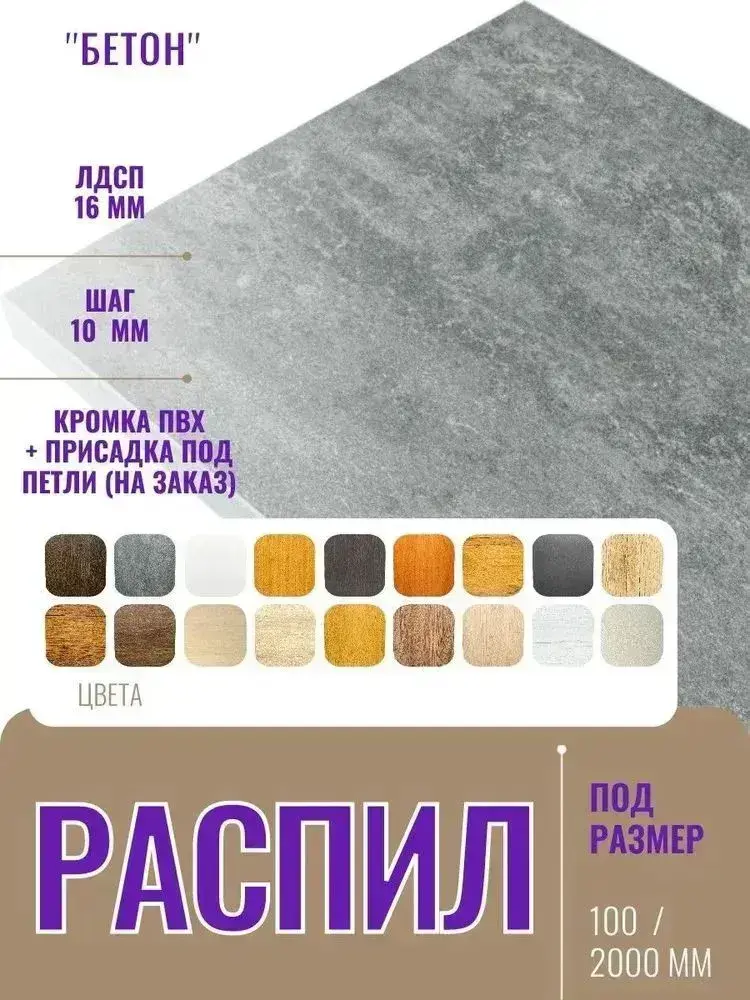 ЛДСП 16 мм Бетон - Распил 480х250 мм с кромкой ПВХ