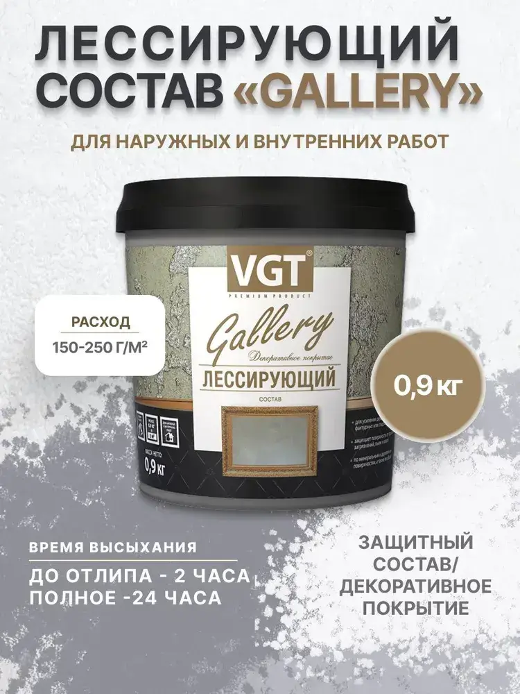 Лессирующий Состав Полупрозрачный VGT Gallery 0.9кг бесцветный