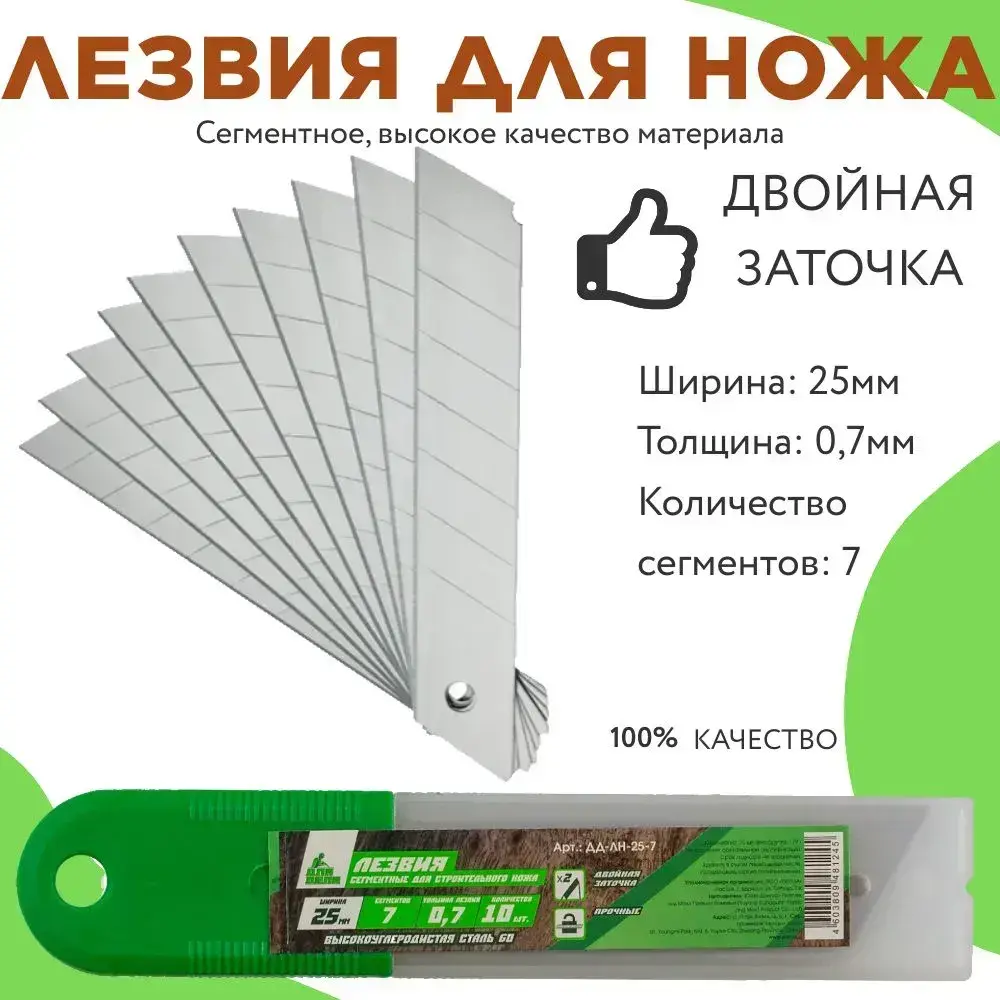 Лезвия для ножа строительного, для канцелярского ножа, сегментное, 7 сегментов Для Дела 25 мм, толщина 0,7 мм углеродистая сталь, в упаковке 10 шт