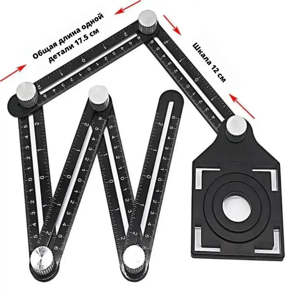 Линейка шестигранная - шаблон плиточника Boom - угольник лекальный универсальный строительный измерительный инструмент, 120 - 175 см для строительных работ, работ по дереву, инженеринга или рисования