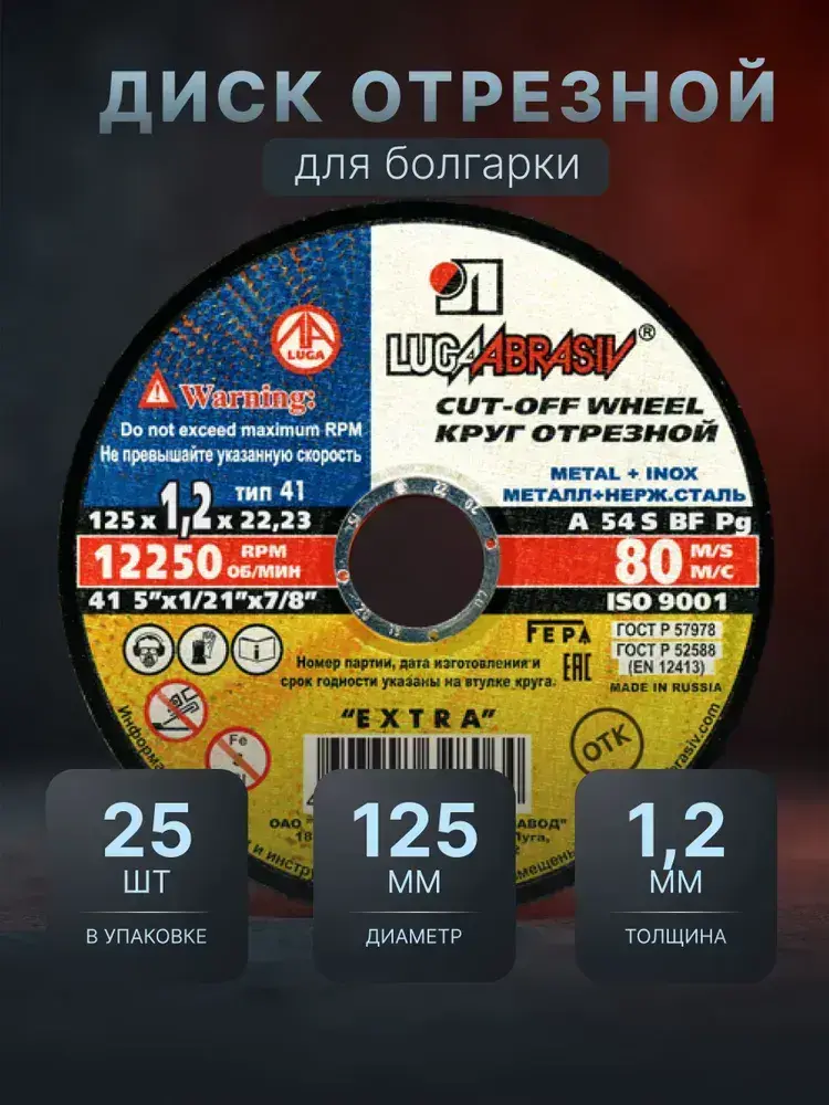 LUGAABRASIV Круг отрезной 125 x 1.2 x 22.23; №1
