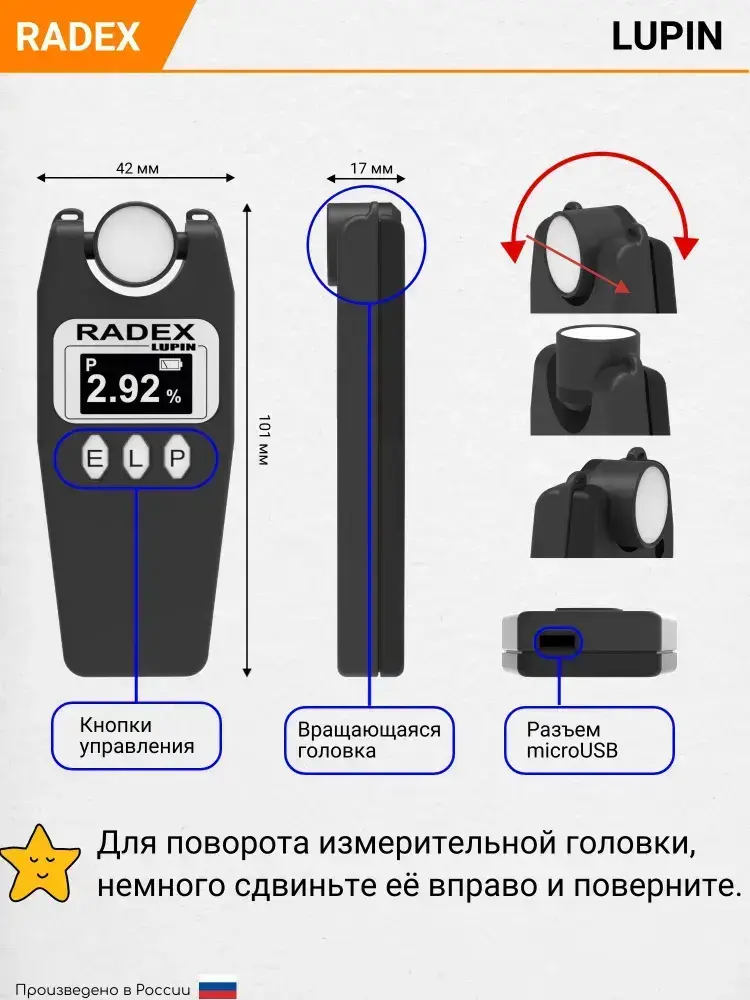 Люксметр RADEX LUPIN / Прибор для измерения освещения / Прибор для измерения коэффициента мерцания