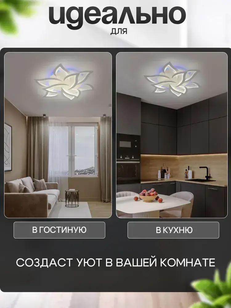 Люстра потолочная светодиодная с пультом 1260/6+3-RGB, светильник потолочный 202Вт