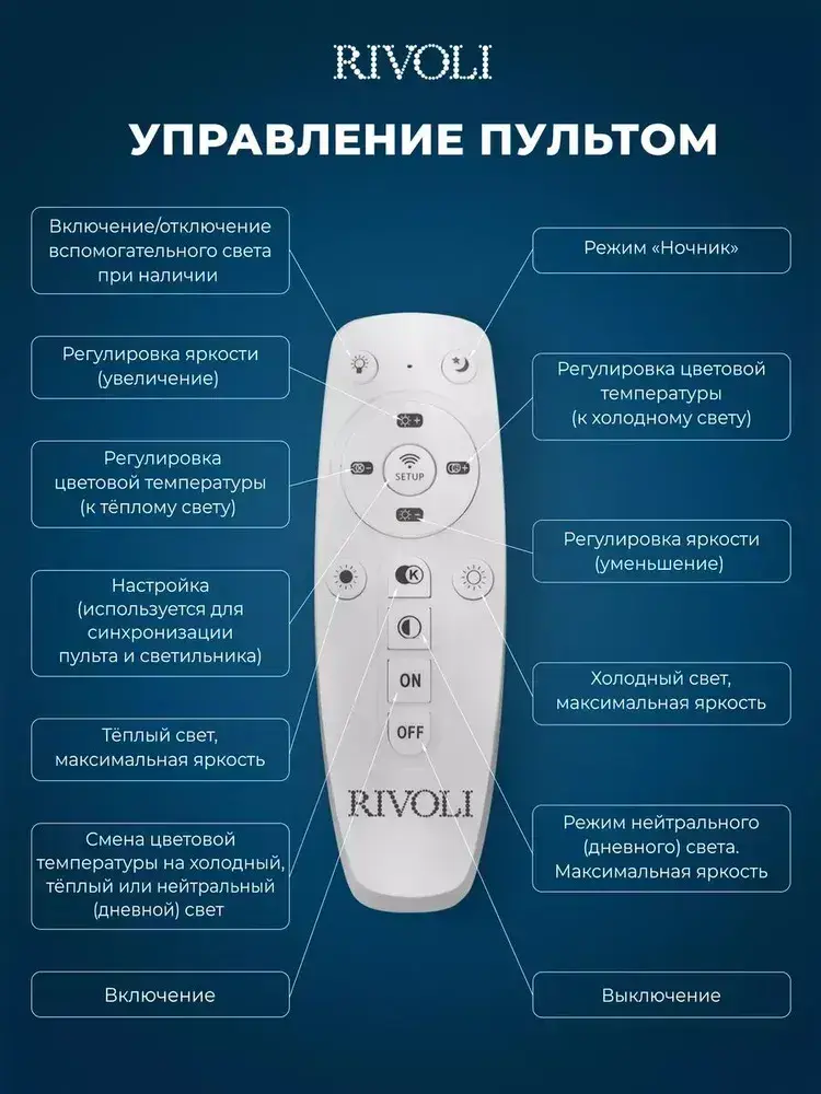 Люстра потолочная светодиодная с пультом ДУ Rivoli белая 80 Вт LED 2750К - 5850К, светильник на кухню, в детскую, в спальню