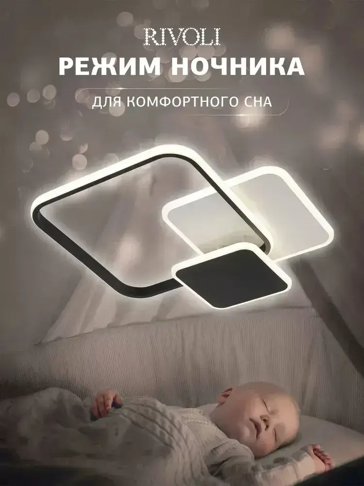 Люстра потолочная светодиодная с пультом ДУ Rivoli черно-белая 90 Вт 3000К - 6000К, светильник на кухню, в детскую, в спальню
