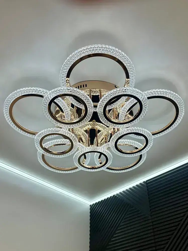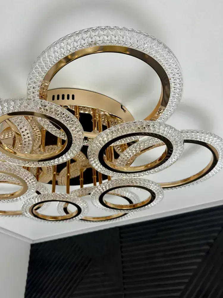 Люстра потолочная золотая с пультом для всех видов потолков, 180 Вт