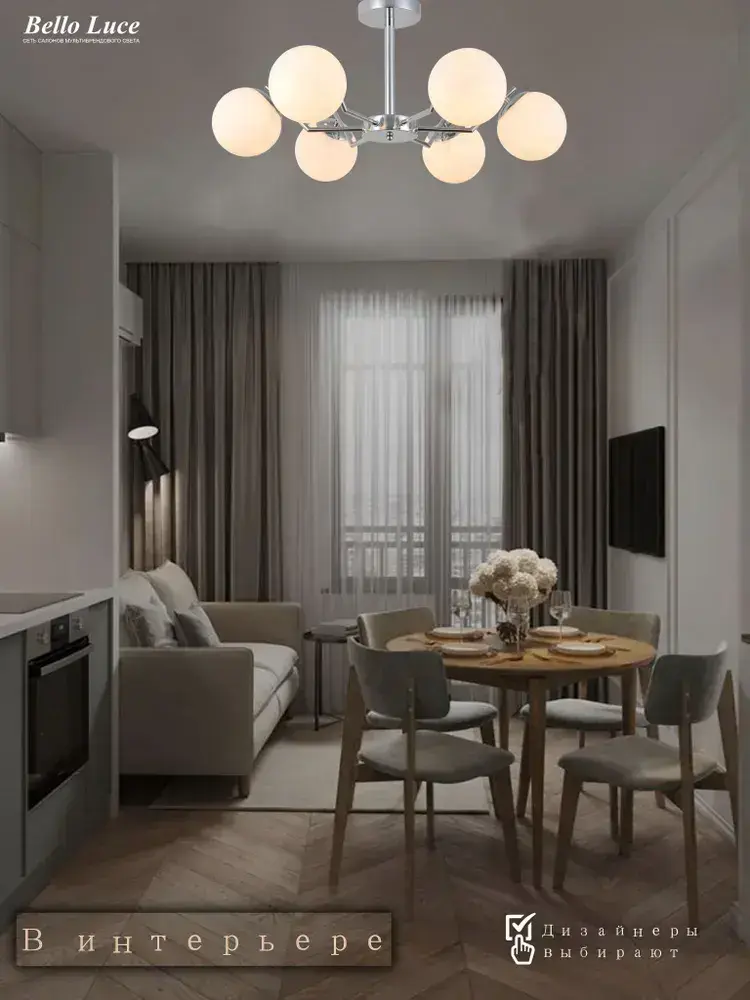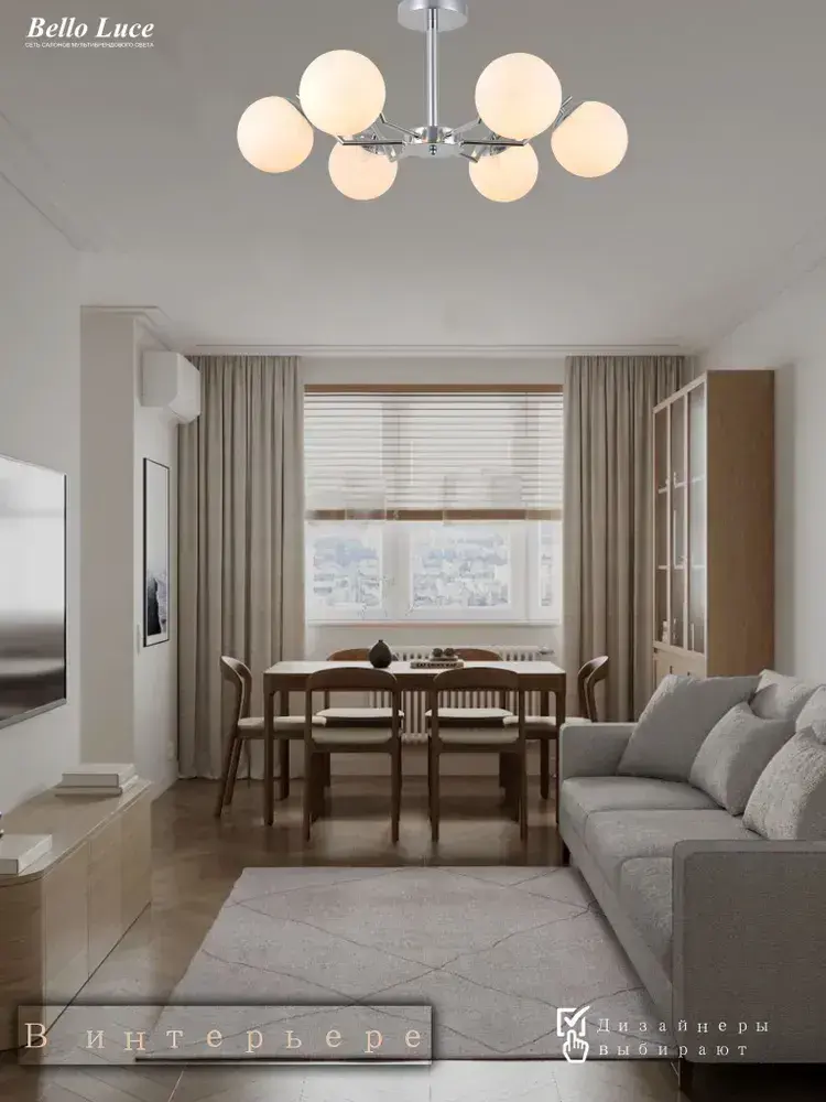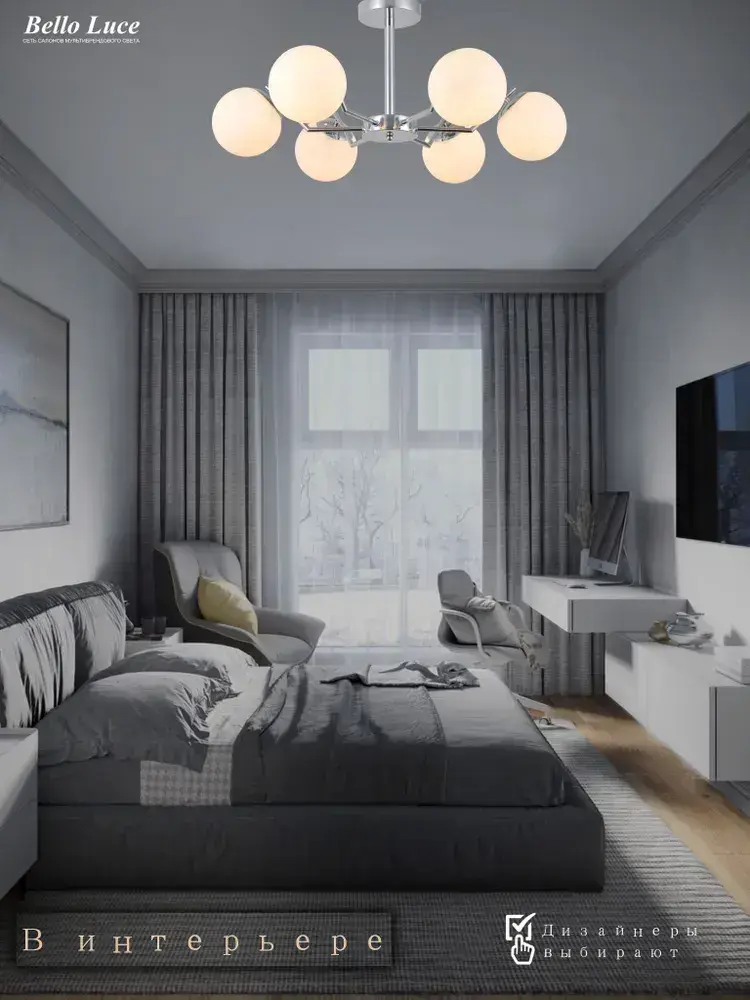 Люстра Престиж хром с матовыми круглыми плафонами потолочная на 6 ламп E27