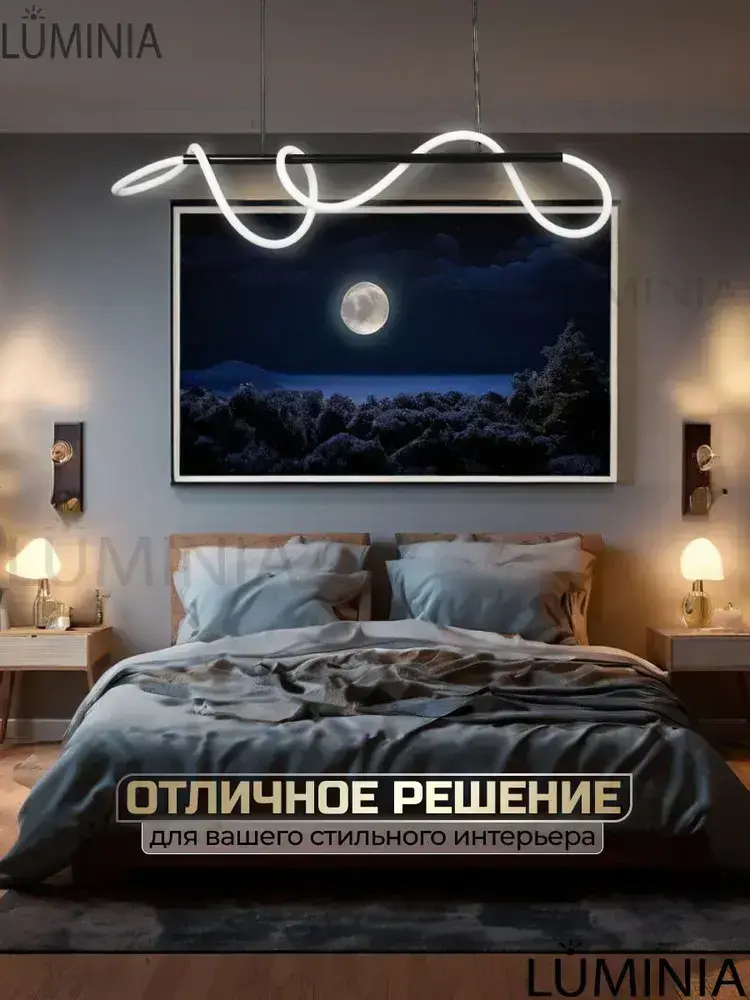 Люстра светодиодная подвесная с пультом на кухню, в гостиную, в зал, черная в стиле Лофт 1,2 метра