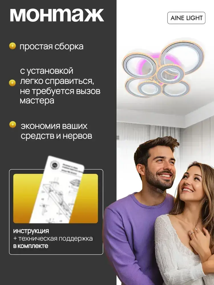 Люстра светодиодная потолочная с пультом AL1808/6 WH, люстра потолочная светодиодная в зал 264Вт