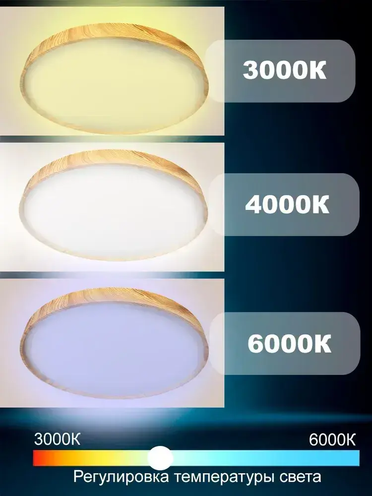 Люстра светодиодная потолочная цвет "Дерево светлое" мощностью 60Вт с пультом, площадь освещения до 15кв.м.