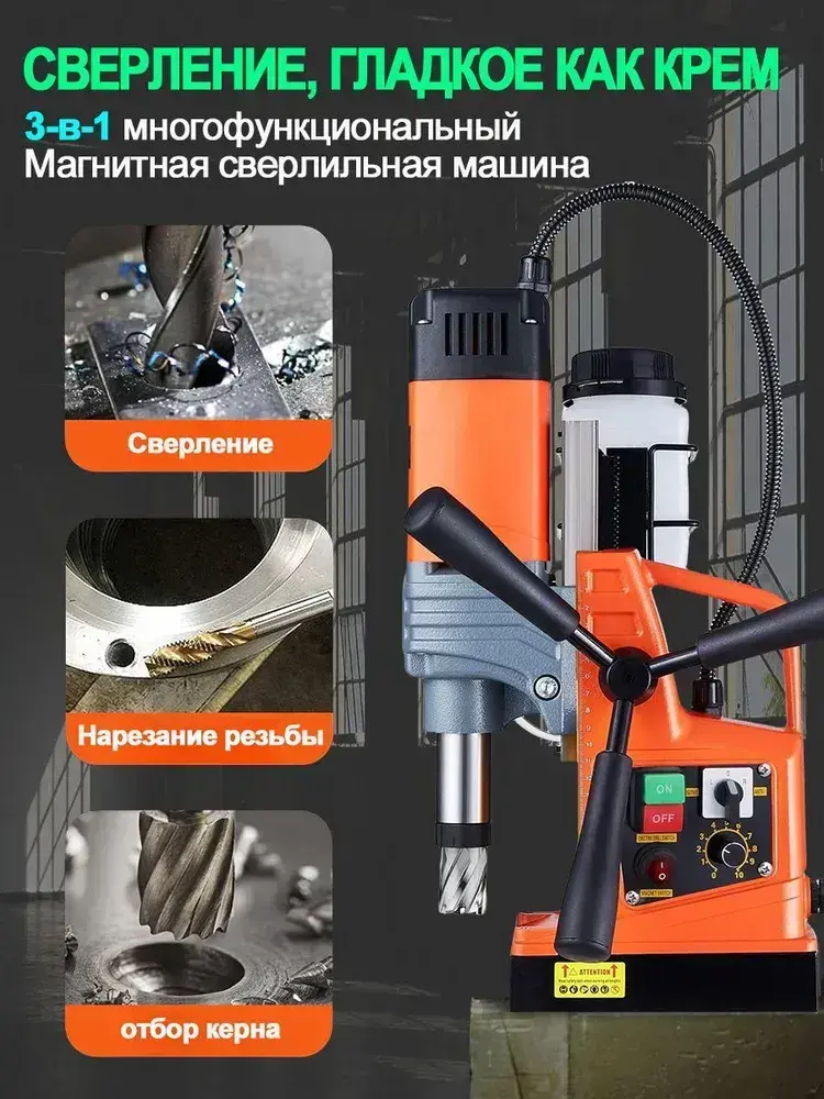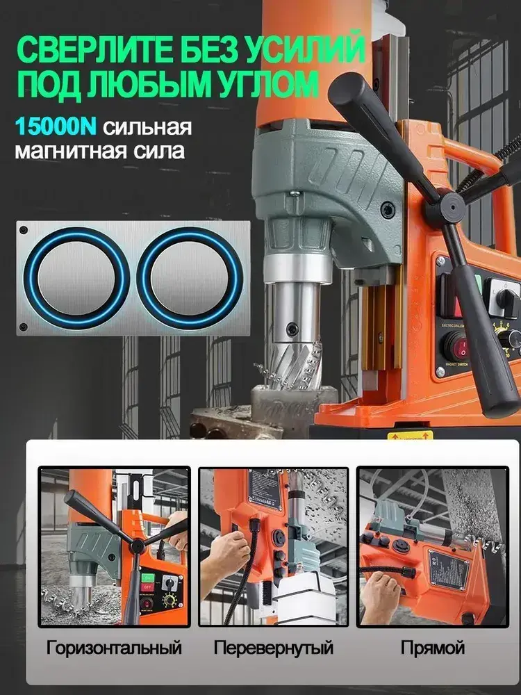 Магнитный сверлильный станок, промышленный класс, 1900 Вт, 780 об/мин, диаметр сверления 2 дюйма, регулировка 10 скоростей, с прямым и обратным ходом