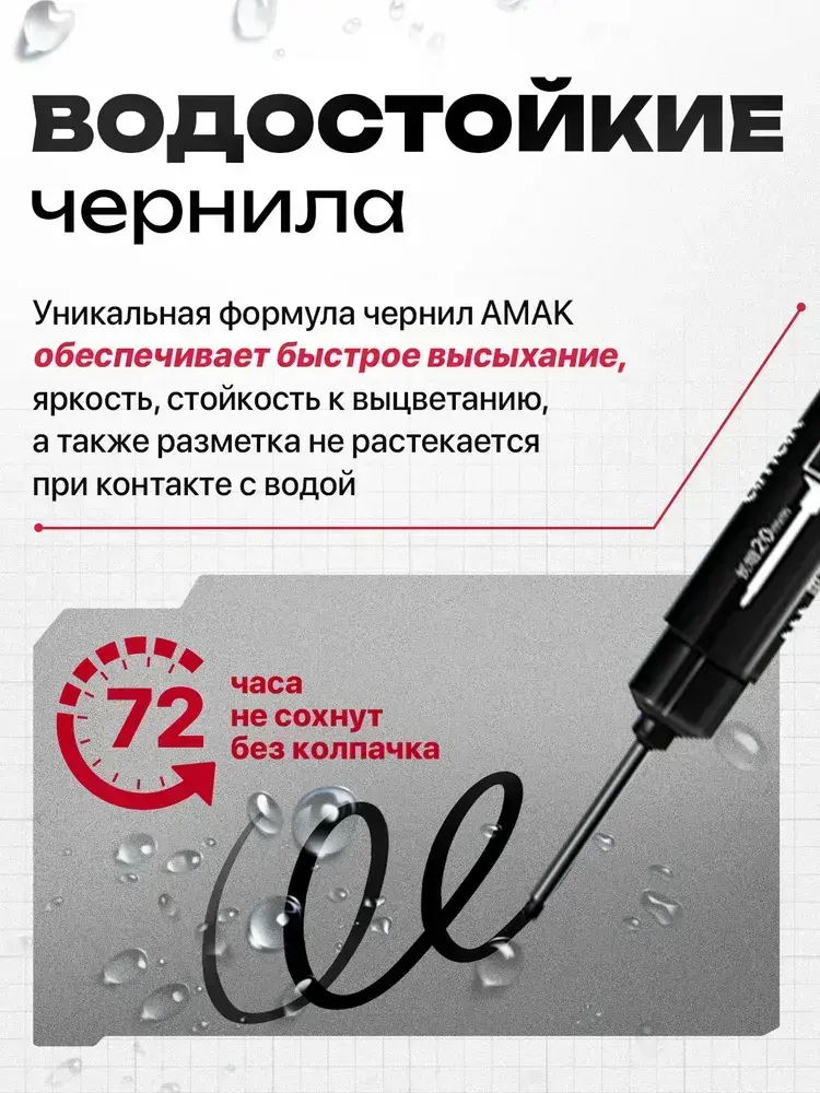 Маркер строительный разметочный перманентный, с длинным наконечником 20мм / набор маркеров 2шт