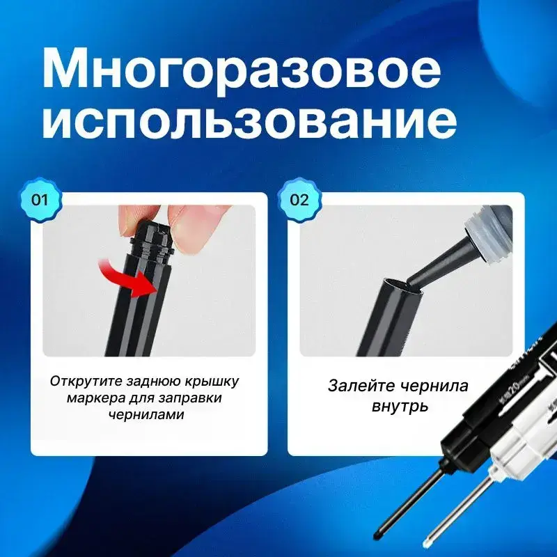 Маркер строительный разметочный перманентный, с длинным наконечником 20мм / набор маркеров 6шт