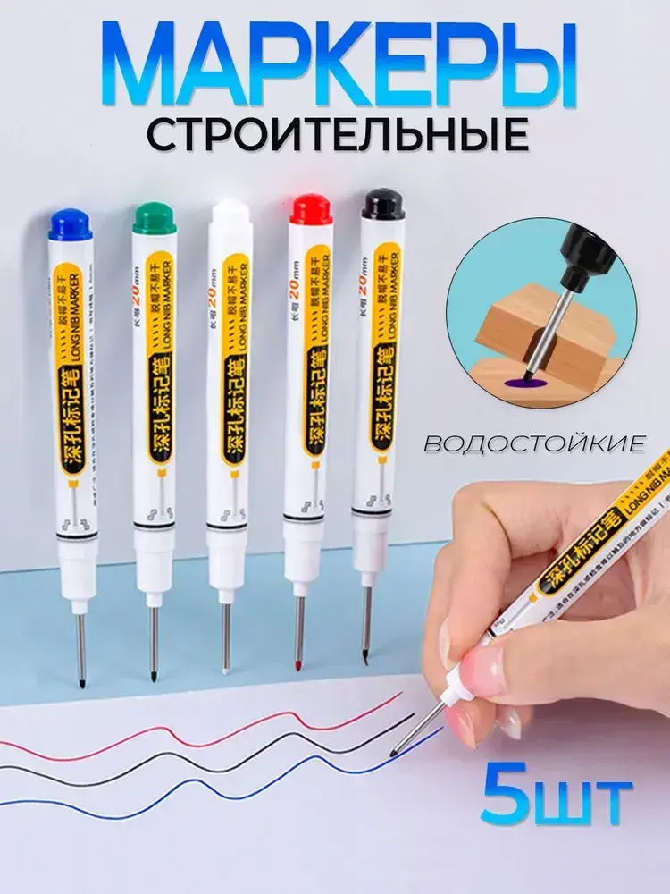 Маркер строительный тонкий разметочный с длинным наконечником 5 шт