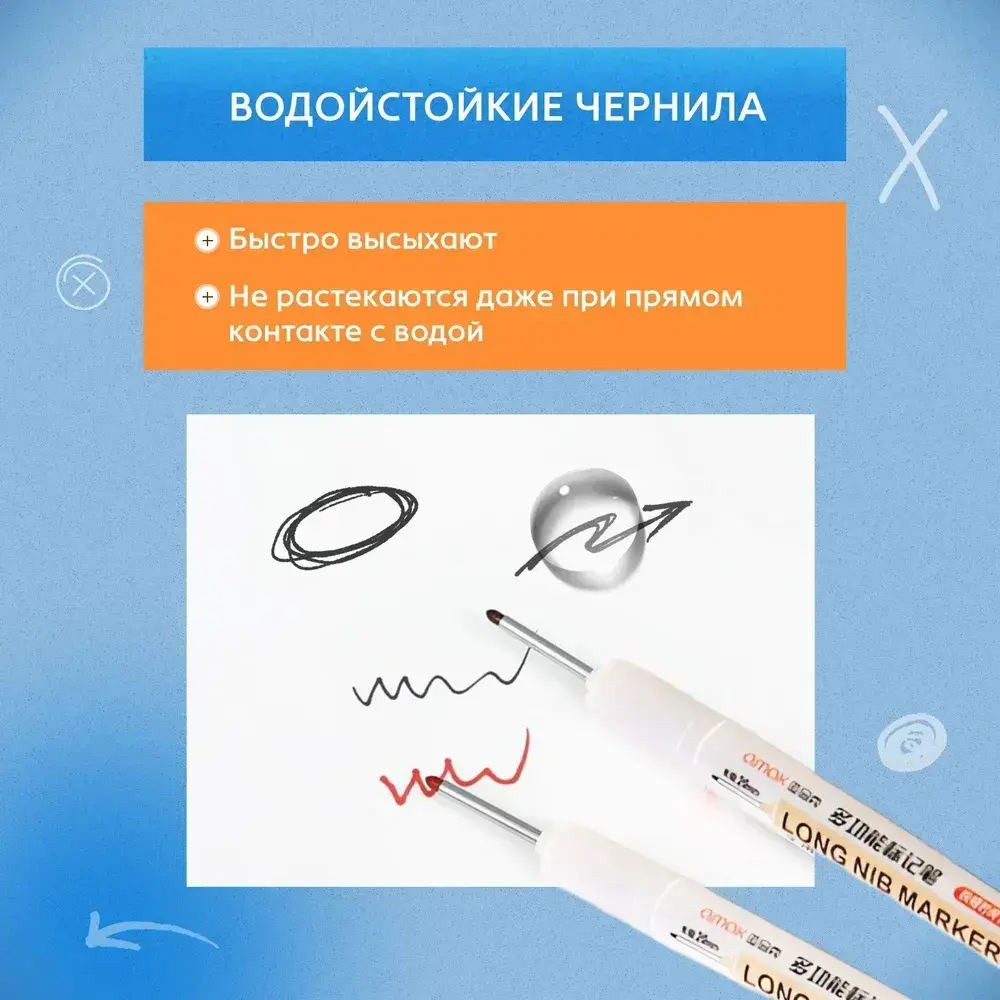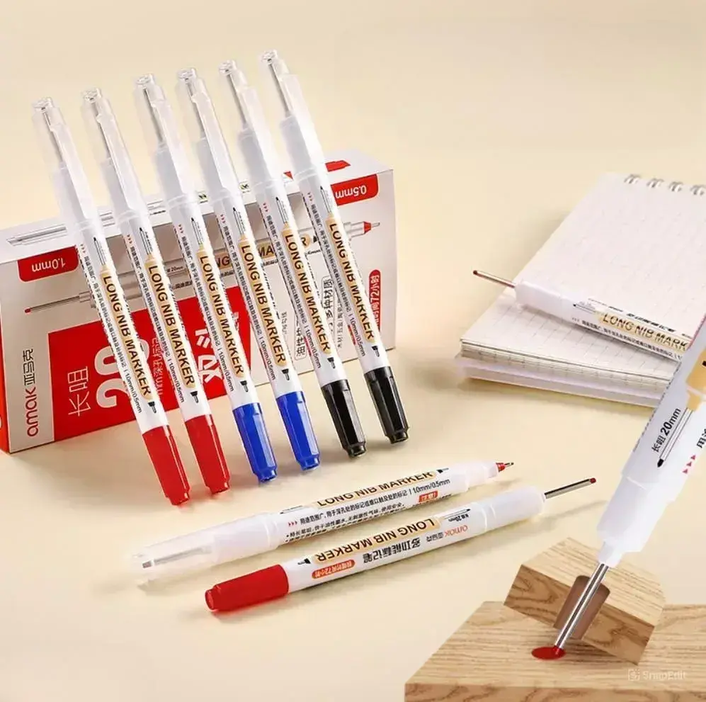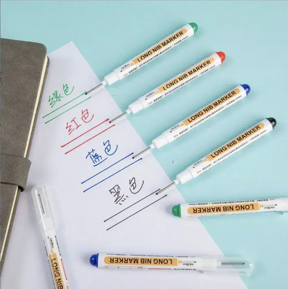Маркер строительный тонкий разметочный с длинным наконечником / 5 шт (черный, красный, зеленый, синий, белый) / Маркеры строительные набор для разметки по металлу, дереву, стеклу, ткани перманентный