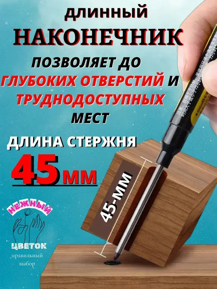 Маркер строительный тонкий разметочный, заправляемый с длинным наконечником 45мм, 2шт, белый, черный.