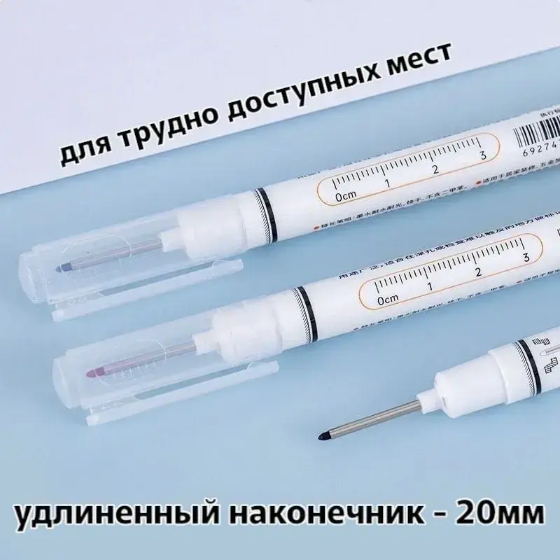 Маркер строительный тонкий с длинным наконечником (5 шт - черный, красный, зеленый, синий, белый) Маркеры строительные набор для разметки по металлу, дереву, пластику, ткани