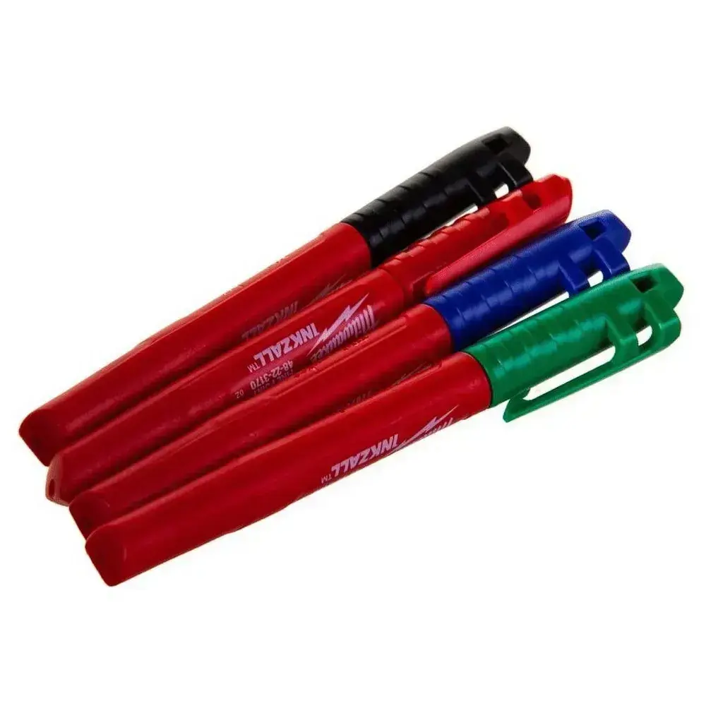 Маркеры с тонким пером, набор - синий, красный, зеленый, черный, Milwaukee INKZALL