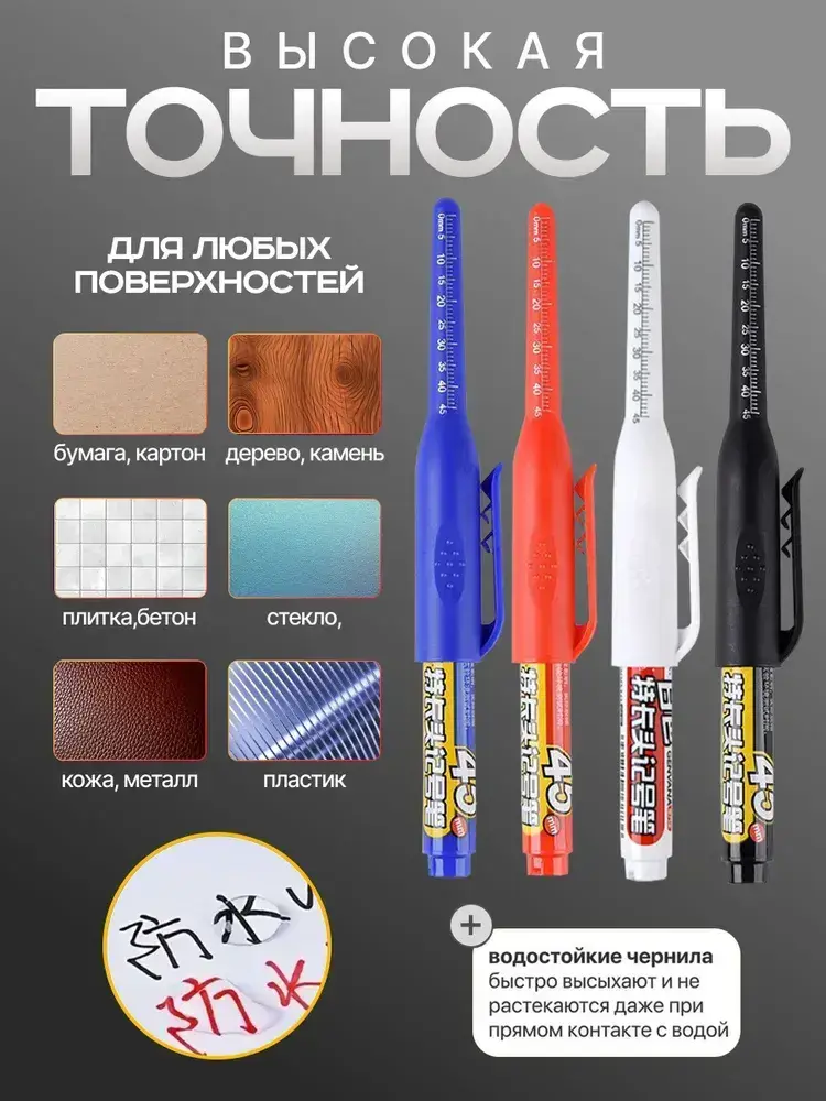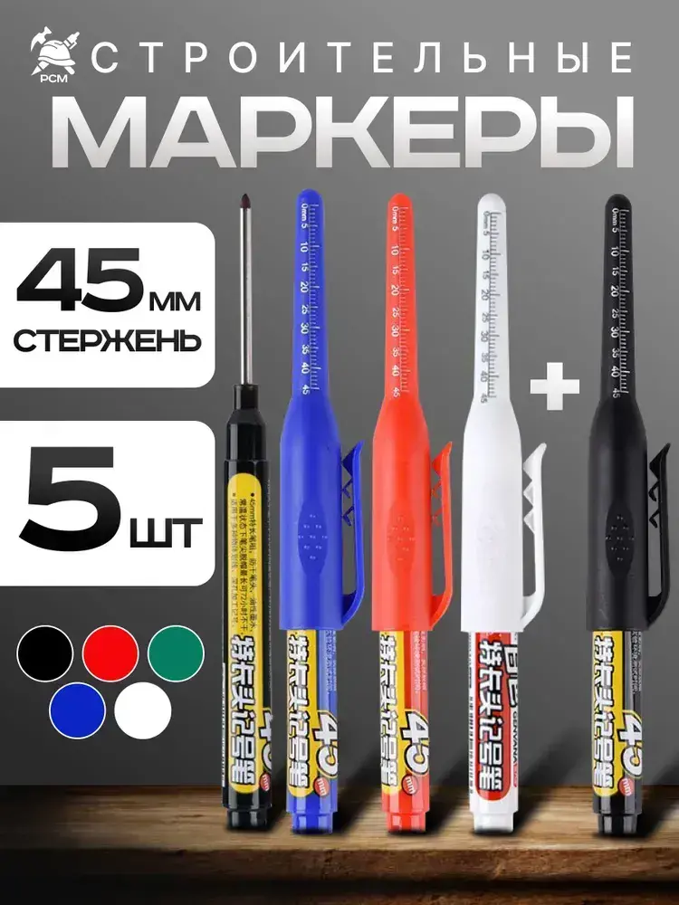 Маркеры строительные разметочные с длинным наконечником длиной 45мм, цветные 5 шт.