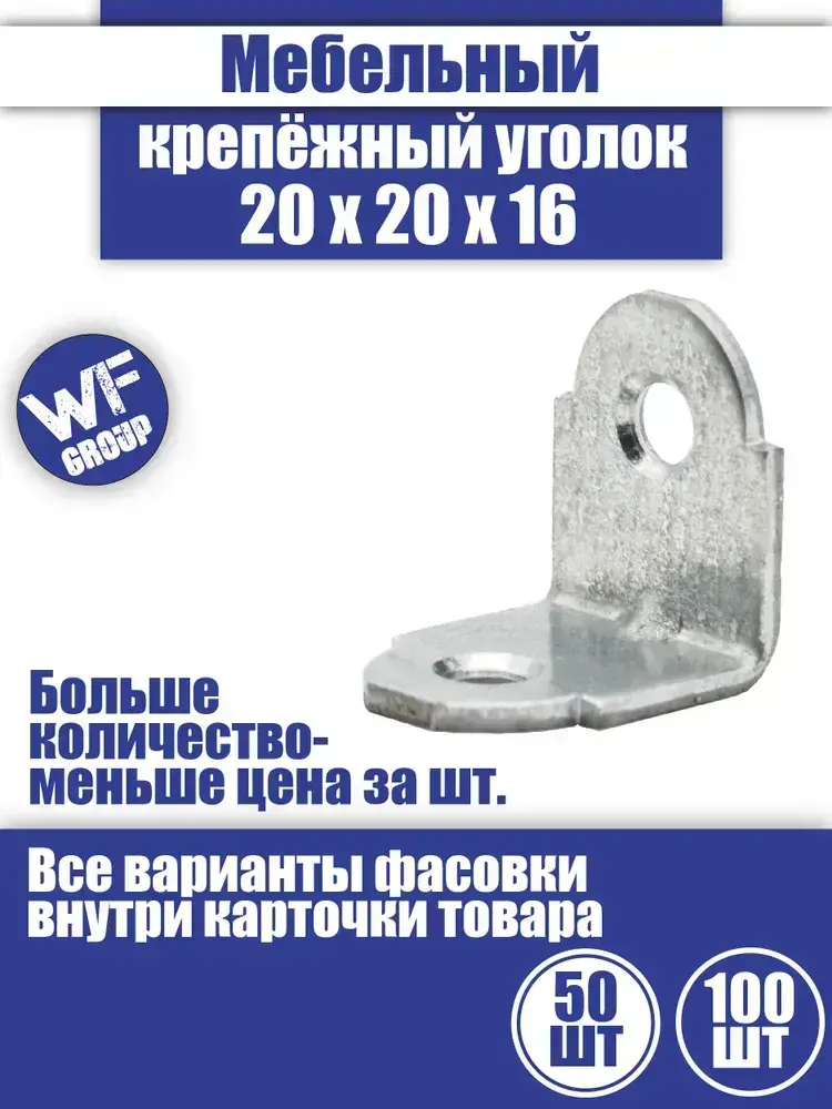 Мебельный крепежный уголок кронштейн, 20x20x16 мм, 50 шт.