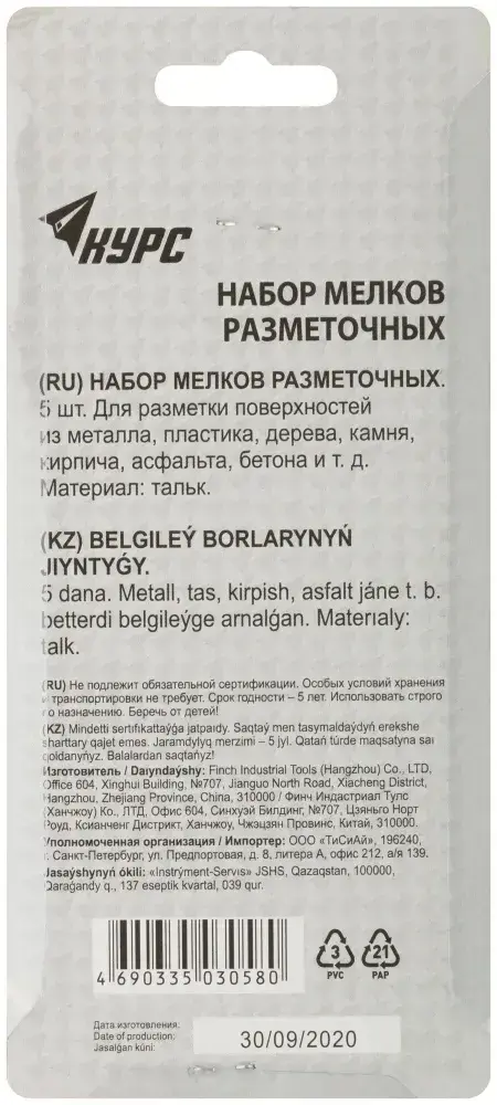 Мел сварщика разметочные тальковые 10 х 80 мм, набор 5 шт. для металла пластика дерева бетона