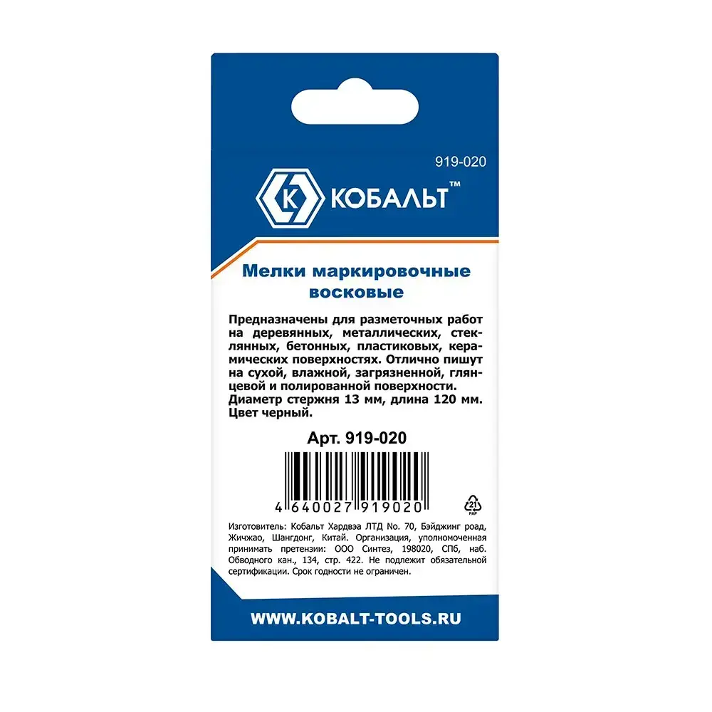 Мелки маркировочные КОБАЛЬТ восковые. чёрные. 120 мм. 6 ШТ.