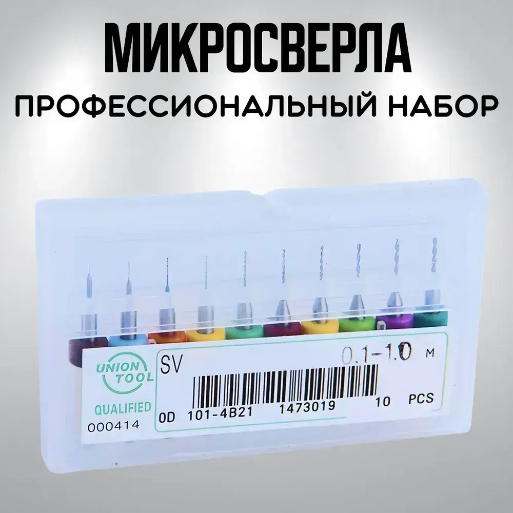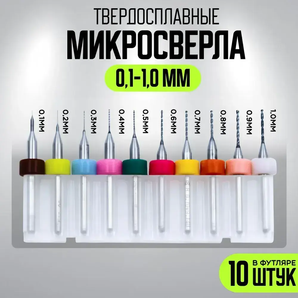 Микро сверло для печатных плат набор 10 штук: 0,1-1,0 мм