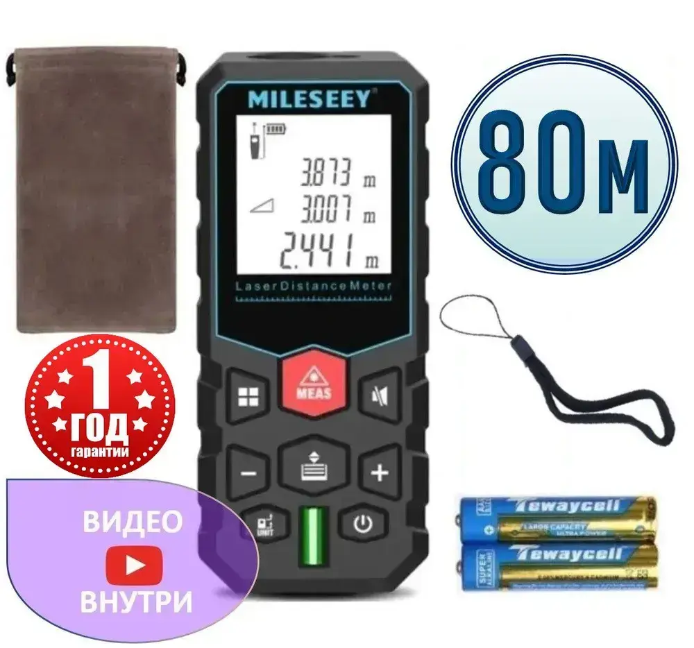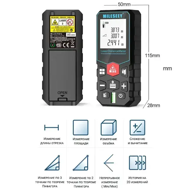 MILESEEY X5 80м Лазерная рулетка/ дальномер строительный